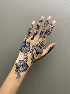 Hypafix is a medical tape that can be applied on dried henna to avoid mess and flaking off. You can leave henna on for longer without any hassle.