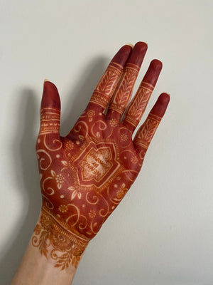 Hypafix is a medical tape that can be applied on dried henna to avoid mess and flaking off. You can leave henna on for longer without any hassle.